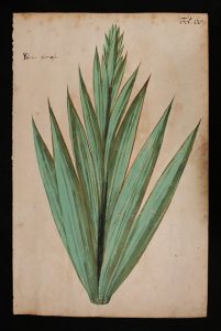 These botanical paintings are from a manuscript created in 1618 in Saxony, Germany. The manuscript’s unknown artist painted flowers native to Europe, but also illustrated yucca, cacti, and other plants from the New World, which were all the rage in the gardens and greenhouses of wealthy Europeans at the time. One of the great things about working with museum collections is that the objects lead you to research topics that you would never have otherwise learned about, like 17th-century botany.