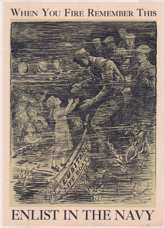 U.S. Navy recruitment poster invoking the Lusitania tragedy to inspire enlistment, 1917