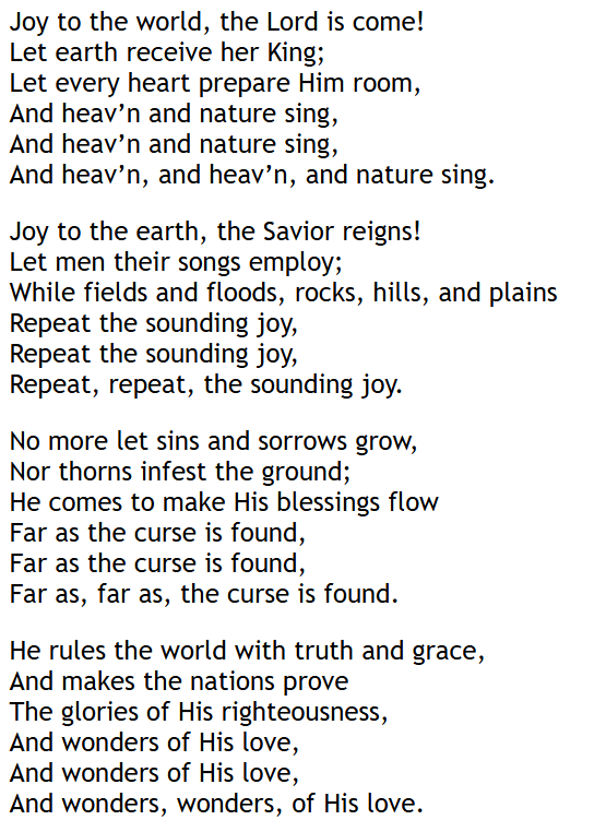 [5] Timeless Truths, “Joy to the World,” https://library.timelesstruths.org/music/Joy_to_the_World/, accessed April 27, 2026.