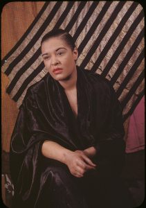 Singing this song was risky; it was a time when public acknowledgment of racial violence could easily make Holiday targeted.[8] The idea of defending freedom abroad but denying it to the “inferior race” makes Holiday’s performance even more important. She knew the need for justice, accountability, and action. As Samuel Ng writes, she had the talent, work ethic, and experience to be a “professional mourner,” using her personal pain and the pain of African Americans who lived in constant fear of racial violence. [9] During her live performances, the lights were dimmed, and a spotlight was focused on Holiday.[10] This setting had audiences focused on her voice, filled with strength and emotion. Ng explains how Holiday’s performance invited her audiences into “a feeling of shared vulnerability.”[11]