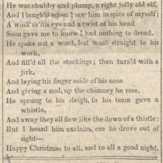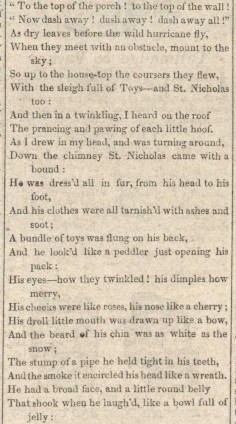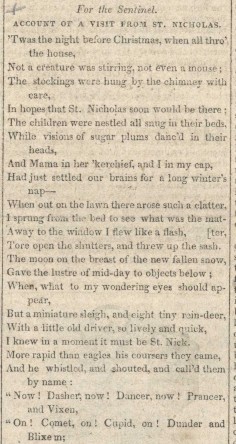 This poem first appeared on December 23, 1823, in the Sentinel, which was the local newspaper of Troy, New York where it was published anonymously.