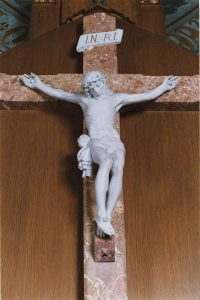 Professor Lelio de Ranieri was the artistic supervisor for the project. In addition to the major changes, radiant mandorlas were painted behind the side altar statues of the Blessed Virgin and St. Joseph, and the arch and rear wall were cleaned and “enlivened.” The work began in 1947 and continued into 1948. After it was completed, Mr. Nolan ordered work done to enhance the lighting and replaced the mensas (tops) of the side altars. In 1949, he would add an Italian marble crucifix at a cost of $500.
