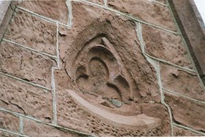 The sandstone used to build the chapel was not of the highest quality. A comparison with the stone used in Presidents Hall makes that very clear. Presidents Hall is constructed of finely cut ashlars, all of which are properly laid in the cross-bedded manner so that the layers of sandstone will not gradually erode and slide away, a process called “spalling”. The builders of the chapel, on the other hand, used random sized stones of varying quality and laid them base-bedded, which allowed the layers of sandstone to spall.