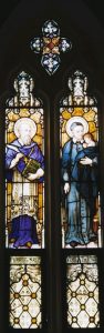 Charity was Vincent’s predominant virtue. It extended to all persons, from abandoned children to the aged. His devotion to orphans led artists to portray him, as in our window, with a foundling in his arms. The parish Societies of St. Vincent de Paul pioneered social service and charitable work in thousands of American parishes. The last four years of Vincent’s life were marked by serious illness and incapacity. He died in 1660 and was canonized in 1737.