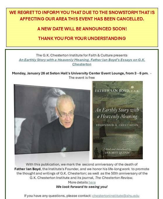 Book Presentation: ‘An Earthly Story with a Heavenly Meaning–Father Ian Boyd’s Essays on G.K. Chesterton’
