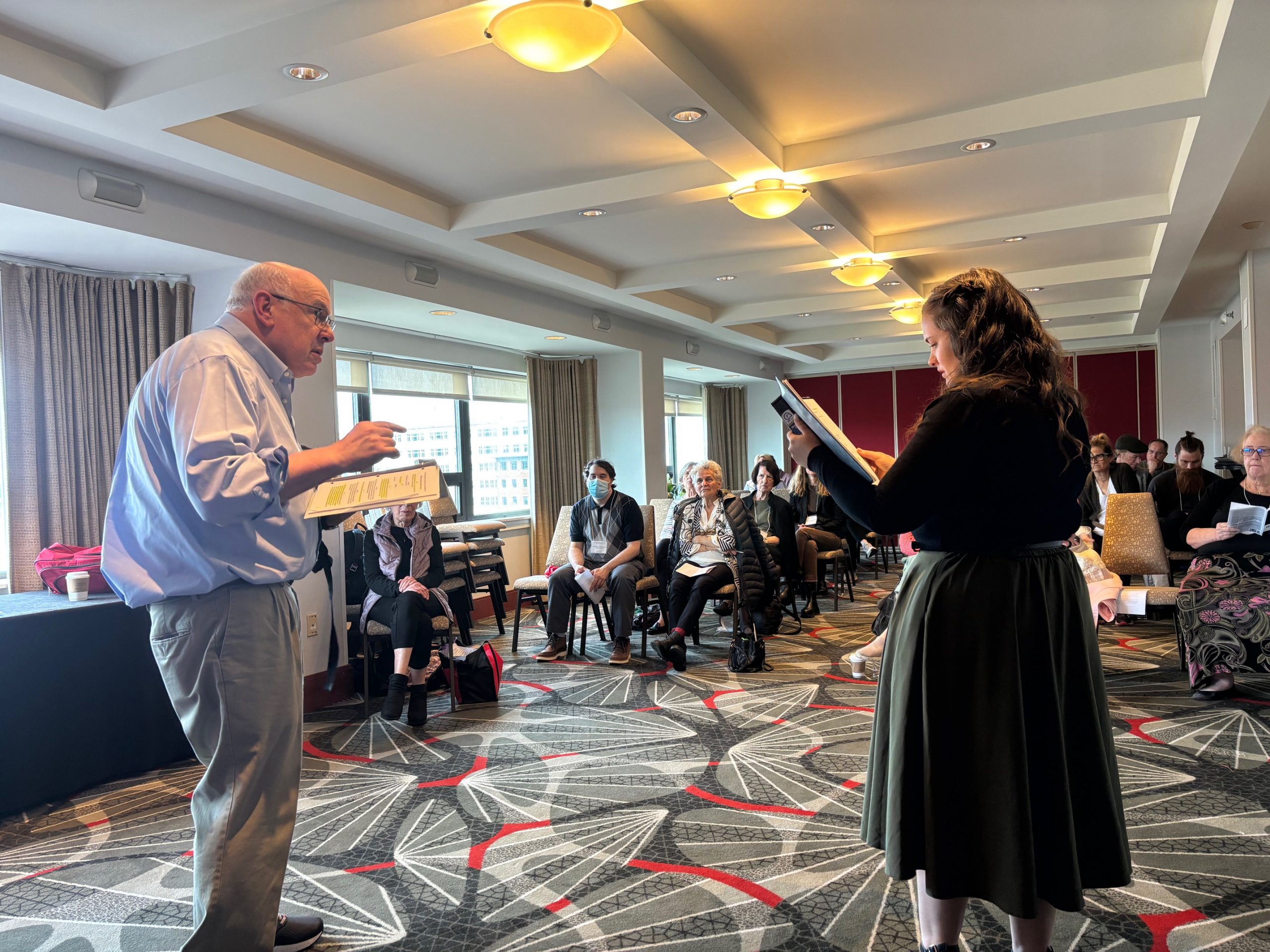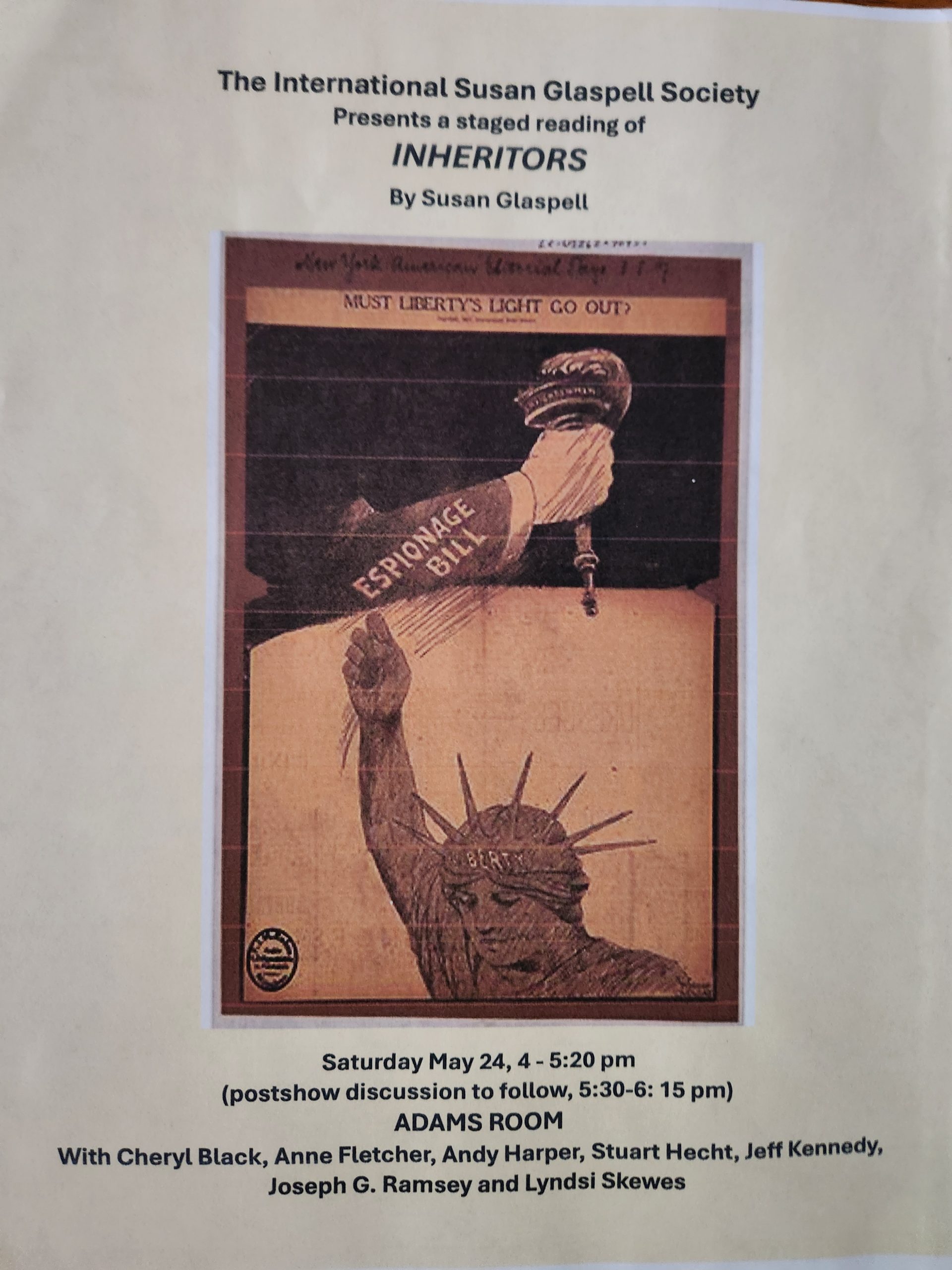The reading went extremely well with a packed house! Many stayed for the discussion afterward, and it was a really robust discussion. This staged reading was a great success thanks to Cheryl’s adaptation and direction of the work, and our luck in getting such a dedicated and talented cast.