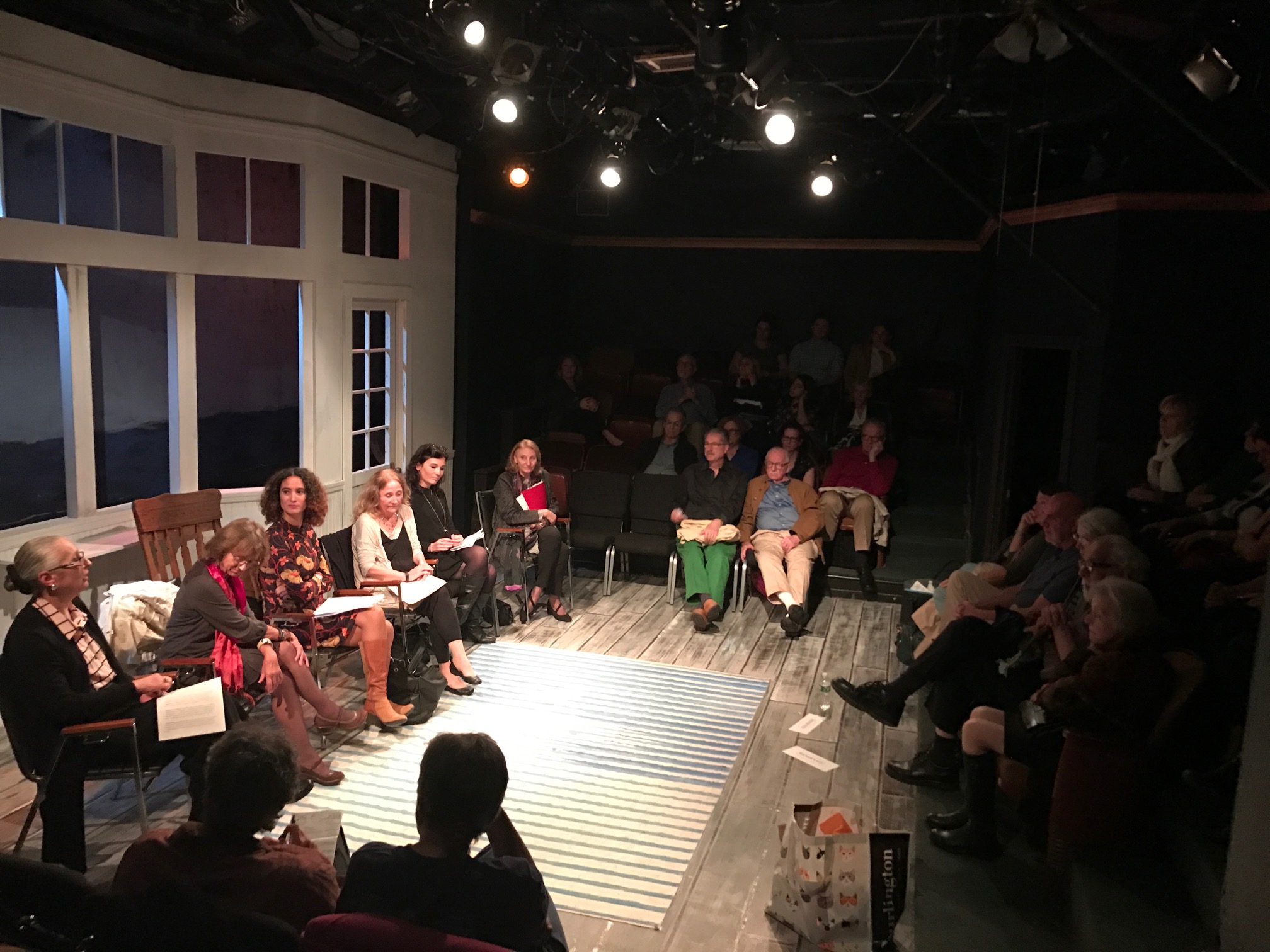 (l. to r.) J. Ellen Gainor, Barbara Ozieblo, Noelia Hernando-Real, Cheryl Black, Emeline Jouve and Sharon Friedman answer audience questions at the Metropolitan “Trifles at 100” concert reading.