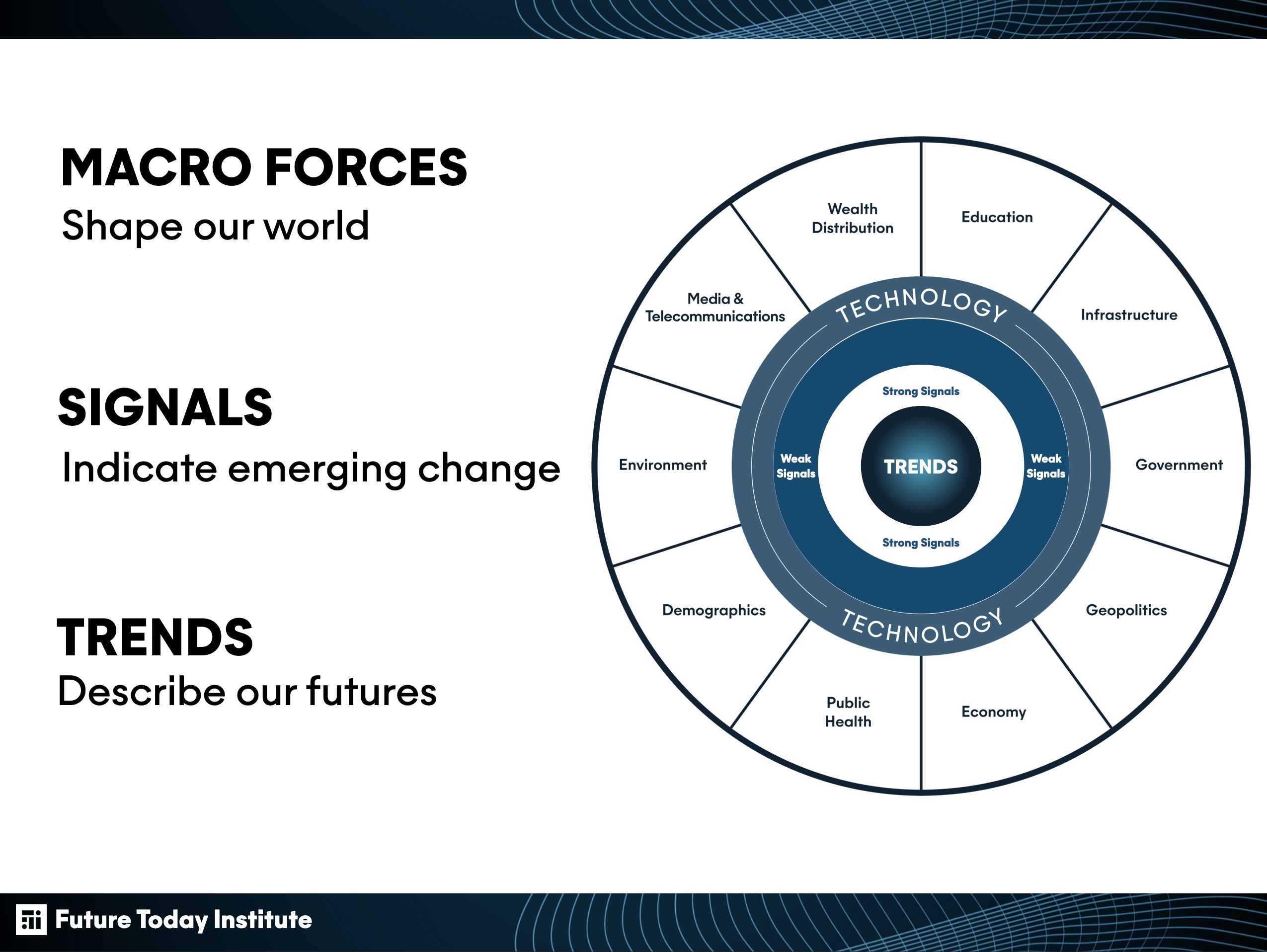 As described by the Future Today Institute, signals help proclaim emerging changes within a society. They can be seen through the impending trends which describe what the future has in store and through the macro-forces which construct our world by way of shifts. Each analysis will present a clearer picture and understanding of its relation to the topic of cybersecurity.