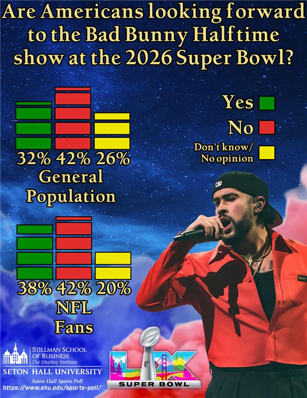 “Despite the challenges of a highly polarized public, the NFL continues to expand its international reach, combined with the cultural influence of artists like Bad Bunny,” said Daniel Ladik, Ph.D., Methodologist of the Seton Hall Sports Poll and Associate Marketing Professor in the Stillman School of Business. “This means the Super Bowl is bound to again achieve a high viewing audience. The NFL continues its bet on international stars and the grooming of an international audience.”