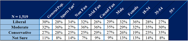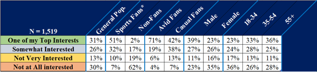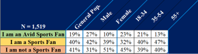 *Note: Presented in each table, Avid + Casual = total sports fandom in the data. Some tables break out the Avid and Casual segments.
