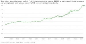Adding to the rally is the ongoing government shutdown and President Donald Trump, whose newest comments announcing a 100% tariff on Chinese imports reignited trade war fears. The shutdown has stalled federal activity and delayed key data, shaking confidence in the economy’s direction. The tariff moves raises costs for U.S. companies and risks higher consumer prices, fueling inflation worries and fears of retaliation from China. With markets on edge and policy uncertainty rising, investors are turning to gold and silver as safer, more reliable stores of value.